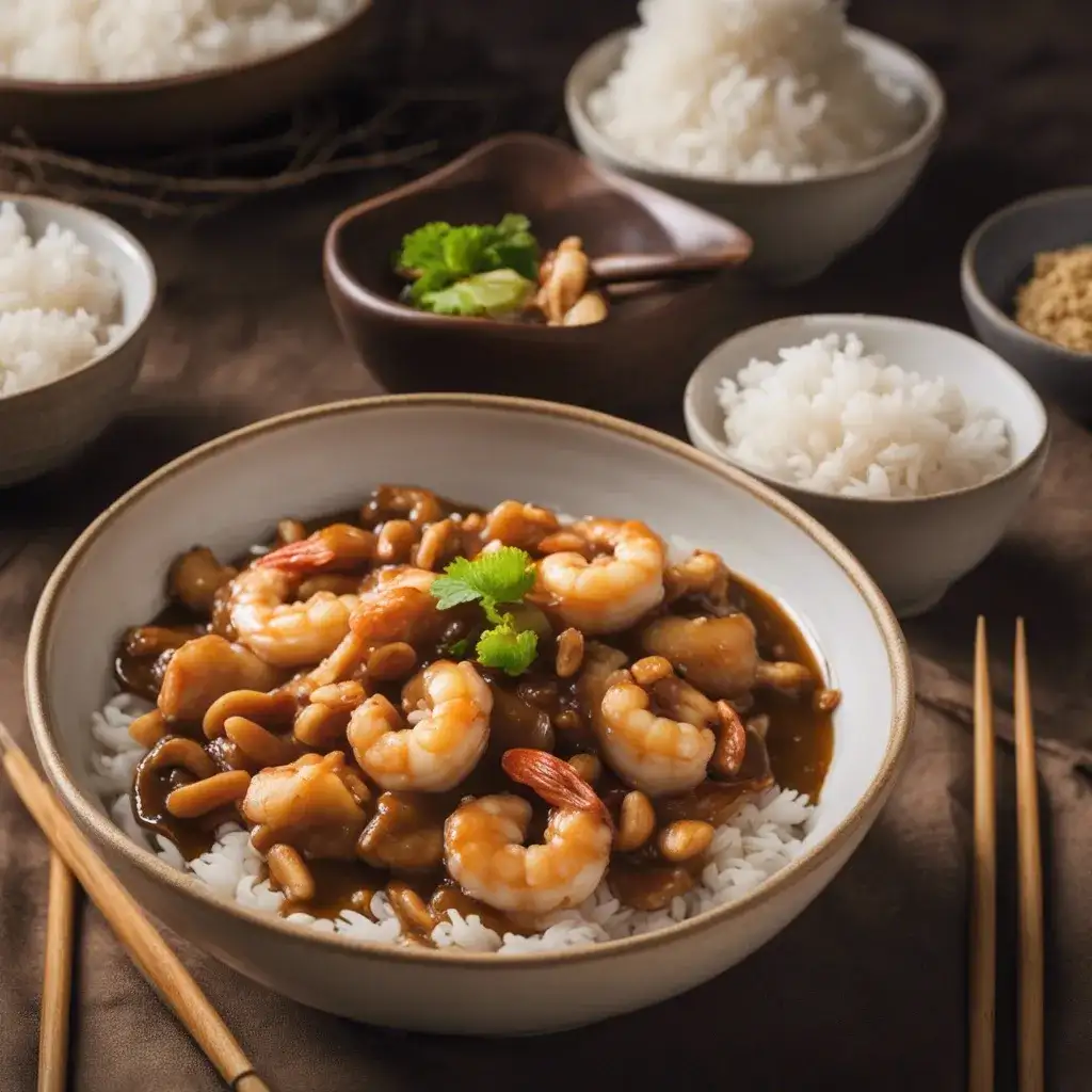 The core elements consistently appearing are shrimp and cashews, frequently accompanied by a base of rice. Variations in seasoning and sauce differentiate the iterations.