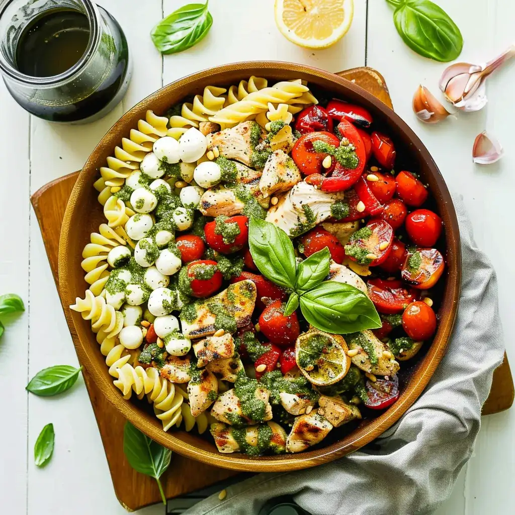 The "pasta salad" iteration appears with equal, if not greater, frequency, positioning the grilled chicken and pesto as central elements within a broader carbohydrate-based framework. These recipes often highlight the ease of preparation and the adaptability of the core concept.