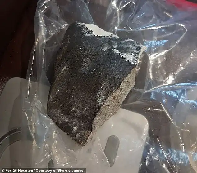 ==The object, described as football-sized, reportedly tore through James's roof, ricocheted off a bedroom ceiling, and landed on her bed.== Firefighters initially suggested the object might have fallen from an aircraft, but later acknowledged reports of a meteor breaking apart over northern Houston.