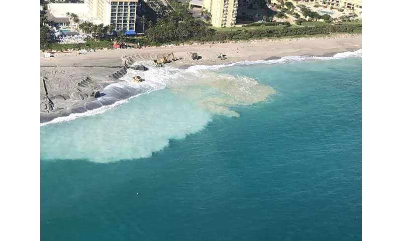 Persistent sediment plumes from beach nourishment projects in South Florida have created significant turbidity, impacting the nearshore waters vital for migrating blacktip sharks. A two-year observational study documented these plumes, some extending 15 kilometers along the coast and 250 meters offshore, drastically reducing water clarity.